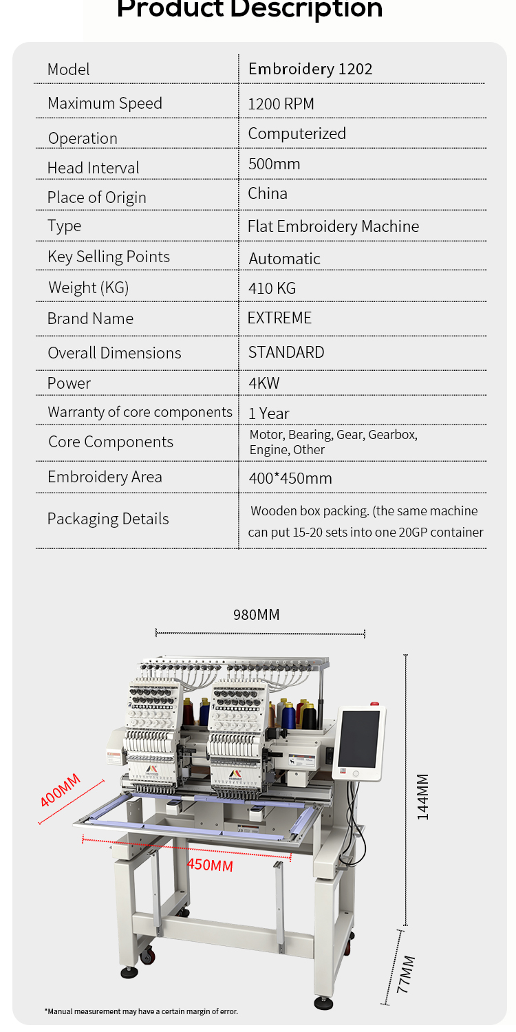 Home About us Products >Machines >Largeformat medias >Heat transfer items >Display and Boards >Tshirts&Clothing >Printing Ink >Vinyl and Other Roll >Other NEWS Branches Team Search Home Machines EXTREME 4 / 5 Emboidery 1202C - 400×450mm 12needle high speed-SP00517 5604536 stars, based on 0reviews Embroidery Area 400mm×450mm Quantity: 0items available Inquire Now Description Reviews (0) Wholesale Double Head Embroidery Machine Commercial 2 Heads Embroidery Sewing Machine For T-shirt Clothes. xxxxxx Recent Reviews User Name Comments User Name Comment Rank Content Picture + Submit Reviews Reset